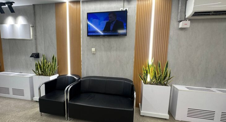 دکوراسیون داخلی دفتر کار 100 متری شرکت آسانسور کارفرمای شرکت آسانسور که سال پیش هم براشون طراحی و اجرای دکوراسیون داشتیم در دفتر کار جدیدشون کار دکوراسیون داخلی برای اتاق مدیریت و اتاق کارکنان با سبک نئوکلاسیک انجام دادیم. دکوراسیون داخلی دفتر کار 100 متری با پارتیشن های شیشه ای جدا کردیم و فضایی جهت آبدارخانه نیز در نظر گرفتیم برای اتاق مدیریت از دیوار آکوستیک بر روی جداره شیشه ها استفاده کردیم و در نهایت دکوراسیون داخلی با قاب های پلی اورتان و رنگ های خاص با سلیقه کارفرما اجرا کردیم. .